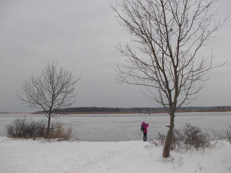 Szlak poprowadził nas na najwyższe wzniesienie czyli Górę Źródlaną o wysokości 22 m gdzie znajdował się pierwszy bunkier obserwacyjny Baterii Wydmowej. Dalej przejście drogą wzdłuż której widoczne były wykopy pod budowany aktualnie rurociąg gazowy. Potem dojście obok Centrum Żeglarstwa Jachtowego do ujścia Wisły Śmiałej. Tu pora na pierwsze zdjęcia a potem powrót przez las na szlak.