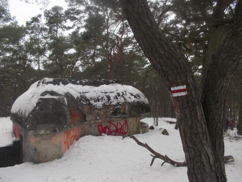 Szybko minęło pół godziny i trzeba było ruszyć dalej. W pobliżu znajdował się bunkier dowodzenia Baterii Wydmowej z 1917 r. gdzie w latach 70-tych i 90-tych działał bar piwny Szwejk. Kolejne zdjęcia i przejście obok gwiazdobloków czyli zapór przeciwczołgowych z czasów ostatniej wojny mijając po drodze współczesne przeszkody wykonane przez poszukiwaczy bursztynu.