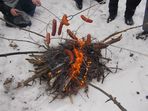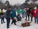 Wkrótce mijamy ogrodzenie Portu Kontenerowego i dochodzimy do miejsca gdzie szlak skręca w kierunku dzielnicy Stogi. Tam odłączają się siostrzyczki z Gdyni a reszta wędruje szlakiem dojściowym do bunkrów amunicyjnych Baterii Wydmowej gdzie zostało rozpalone ognisko. Oczywiście nie zabrakło pieczonych kiełbasek oraz rozgrzewających napojów a także śpiewów turystycznych.
